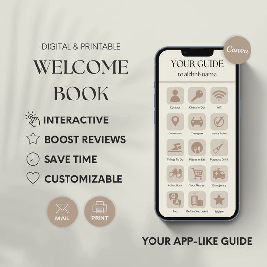 Give your guests the best of both worlds with this versatile welcome book bundle—featuring a mobile-friendly digital version and a ready-to-print PDF, designed for Airbnb, VRBO, Booking.com, and other vacation rental platforms.