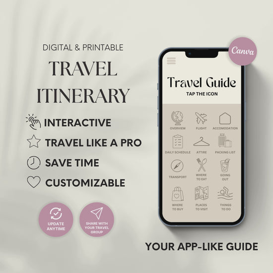 Plan smarter and travel better with our beautifully designed digital and printable travel itinerary bundle, crafted to keep every detail of your trip organized and accessible. Whether you're traveling solo, as a couple, or in a group, this all-in-one guide functions like an app and prints like a pro.