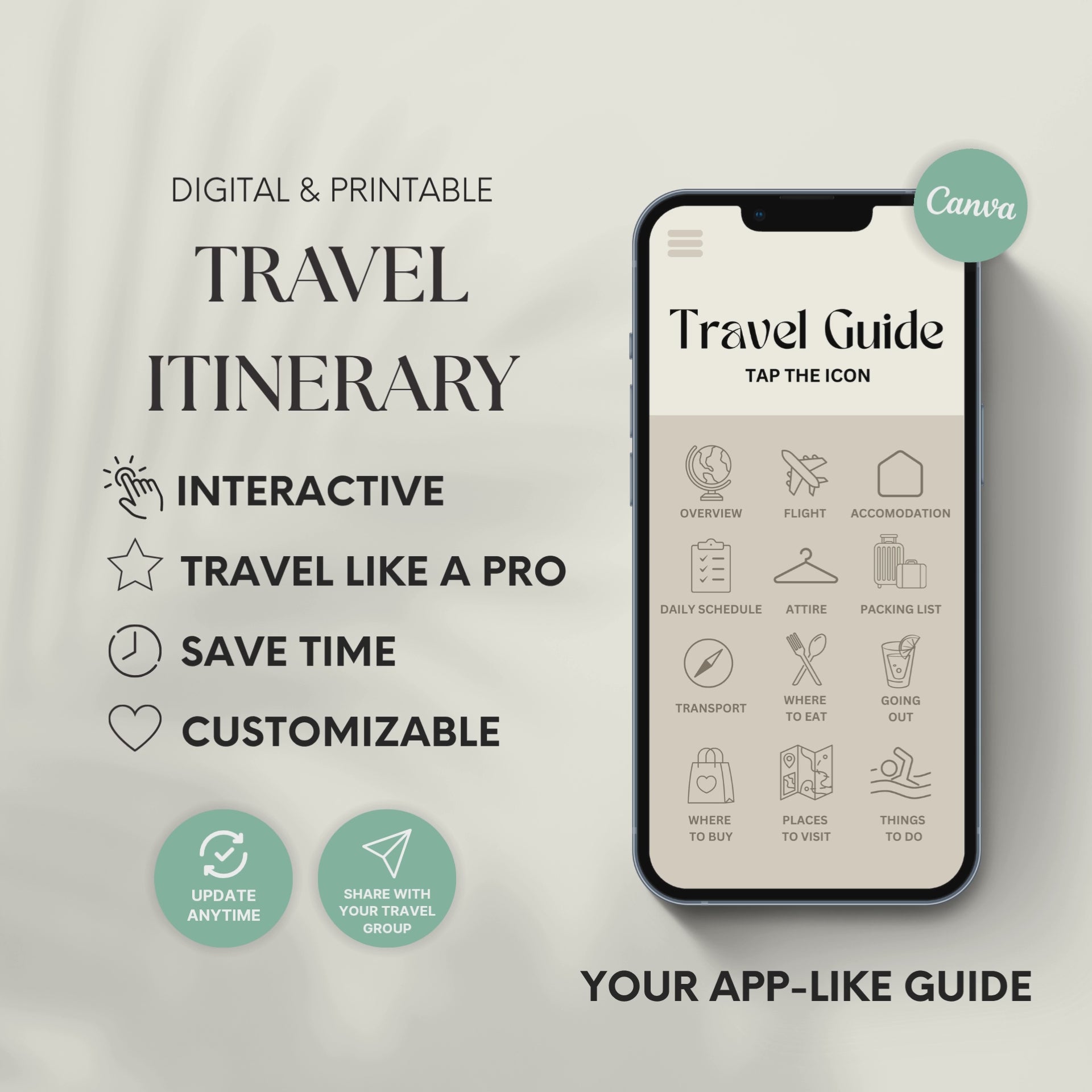 Enhance every vacation with our all-in-one digital travel itinerary and printable travel planner. Designed for both independent travelers and professional travel agents, this bundle makes organizing trips easier, more stylish, and completely customizable.
