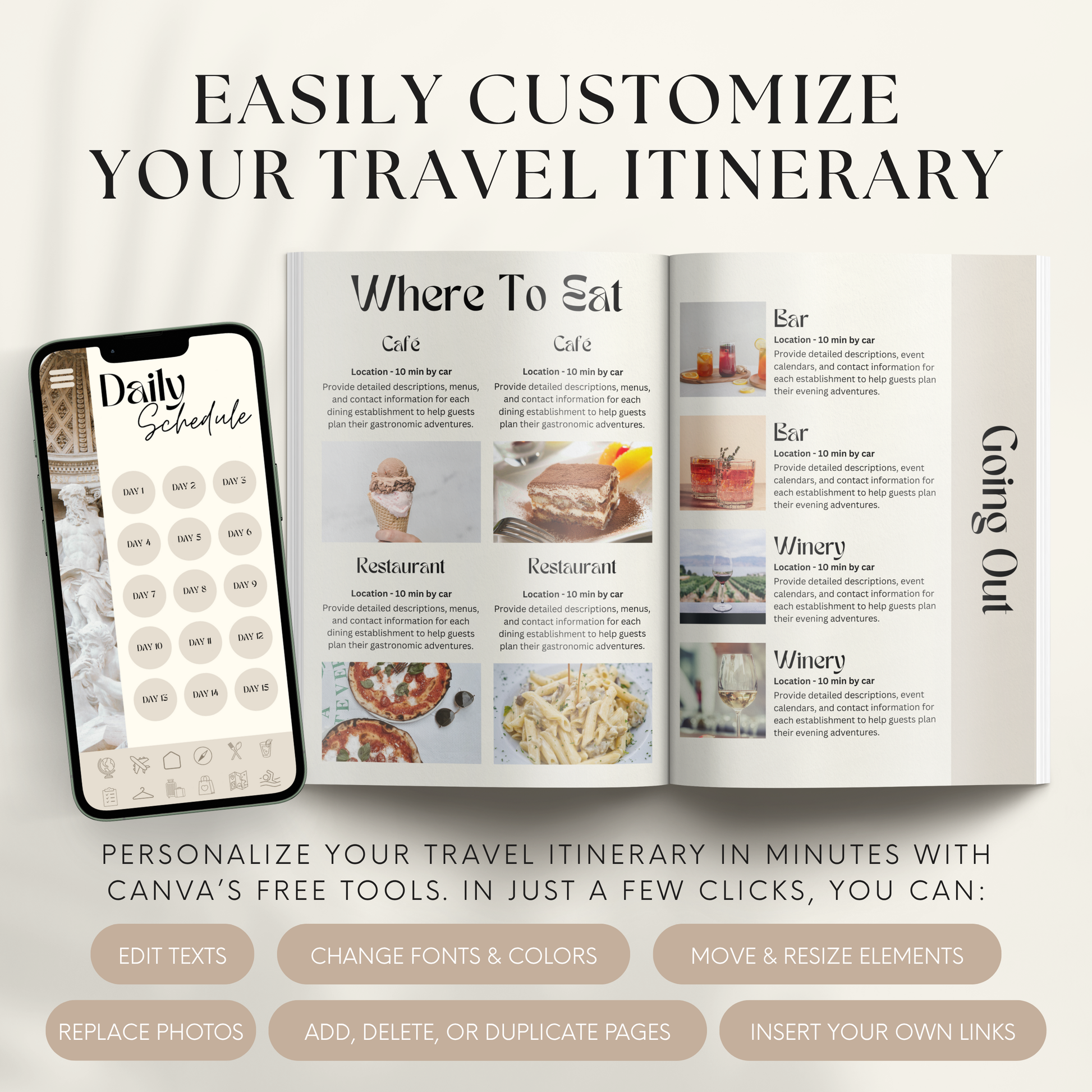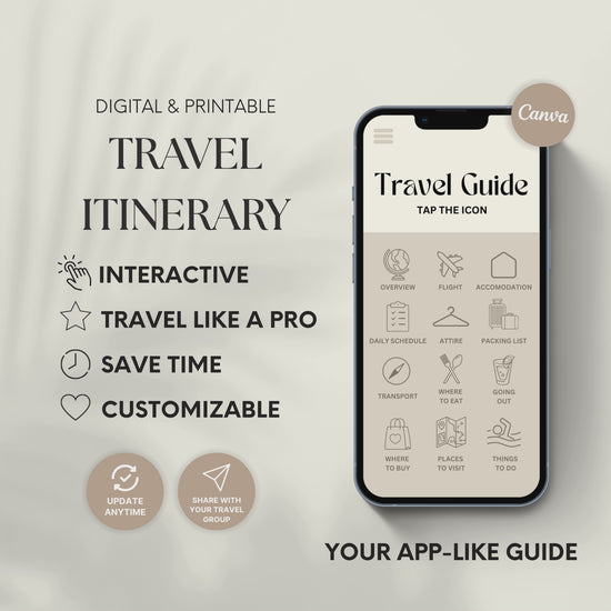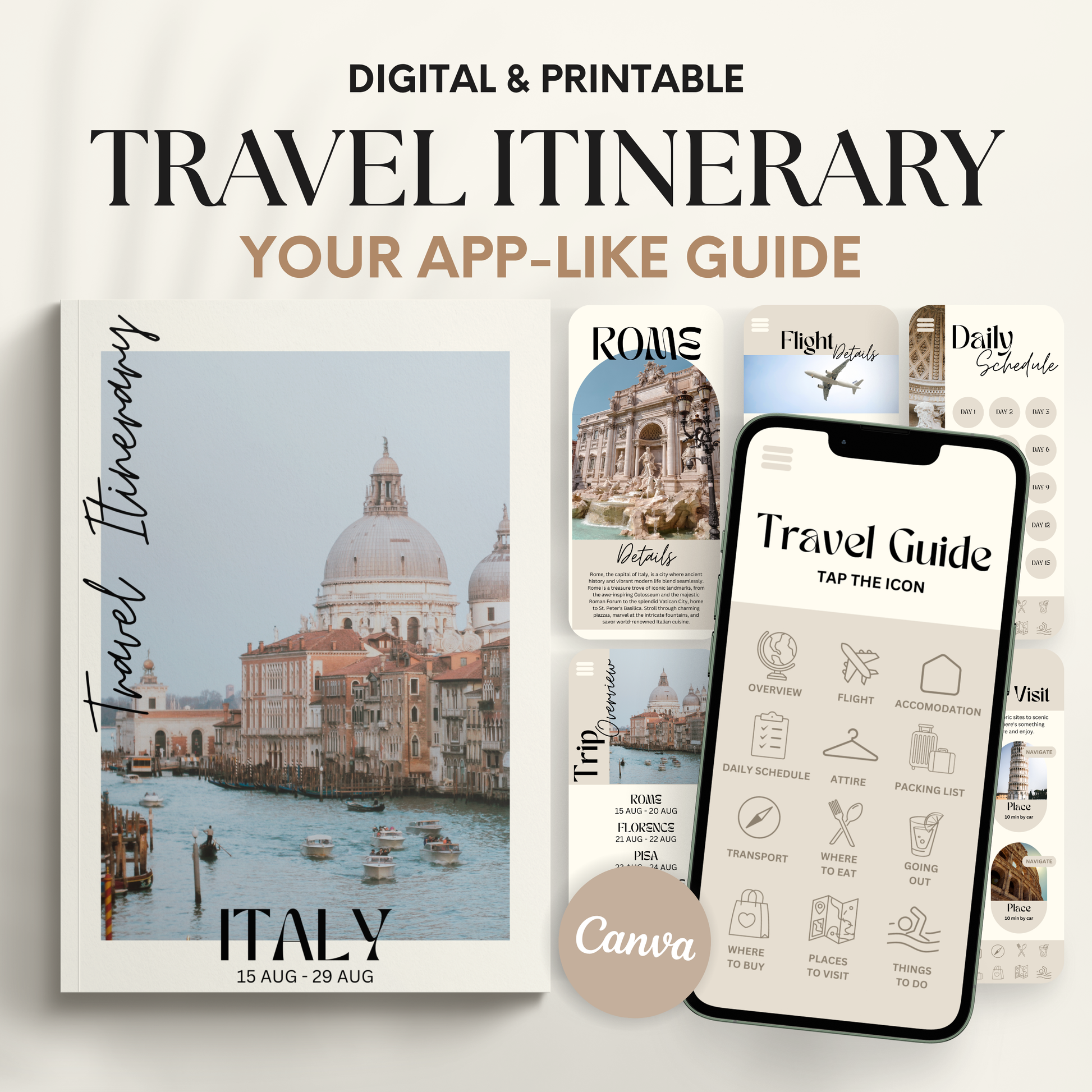 Plan smarter and travel better with our beautifully designed digital and printable travel itinerary bundle, crafted to keep every detail of your trip organized and accessible. Whether you're traveling solo, as a couple, or in a group, this all-in-one guide functions like an app and prints like a pro.