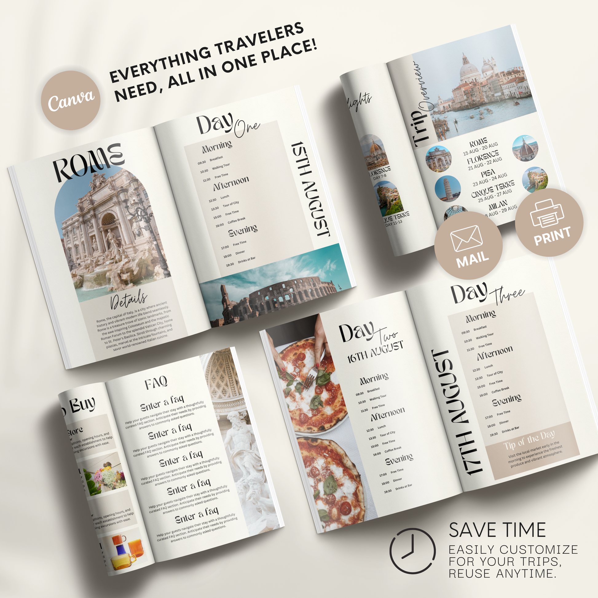 Easily adjust colors, fonts, text and images to perfectly match your trip. No design experience needed, personalize in minutes.